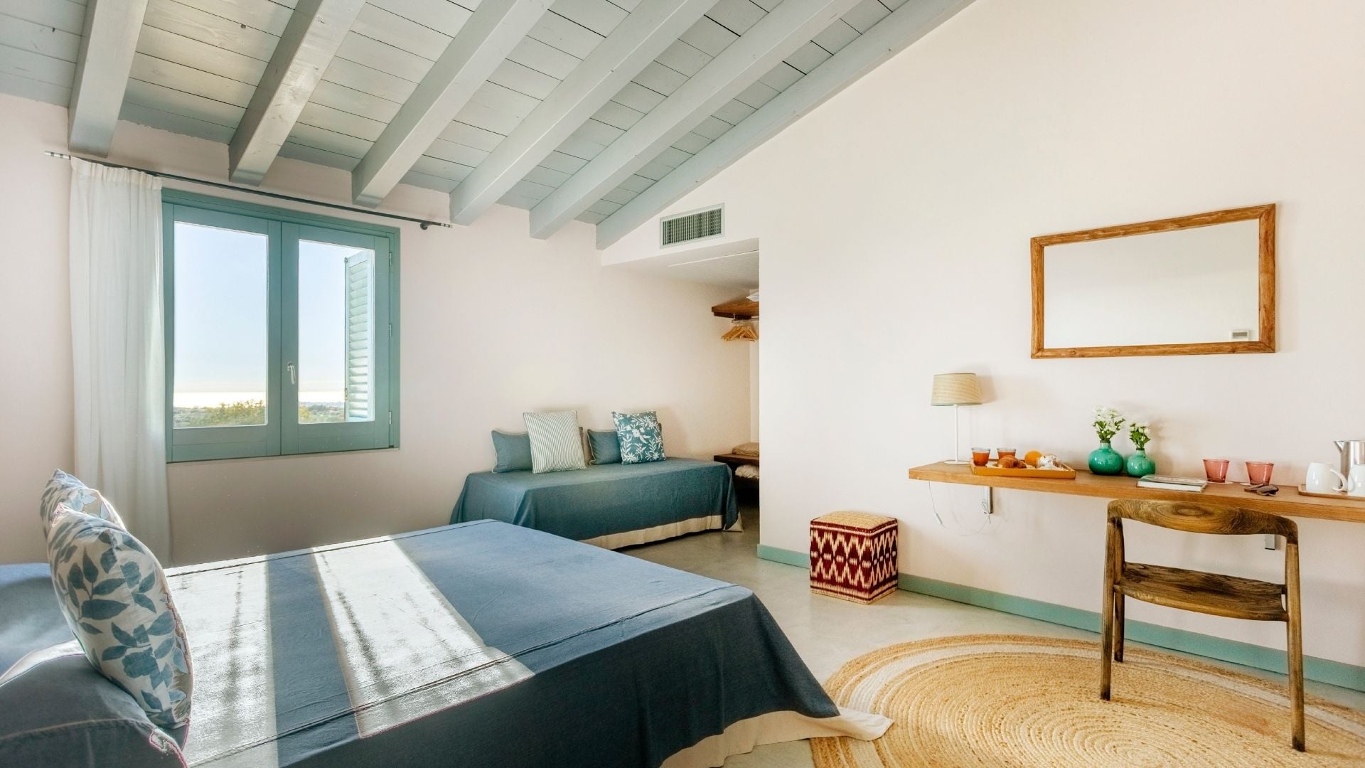 Room with countryside and sea view