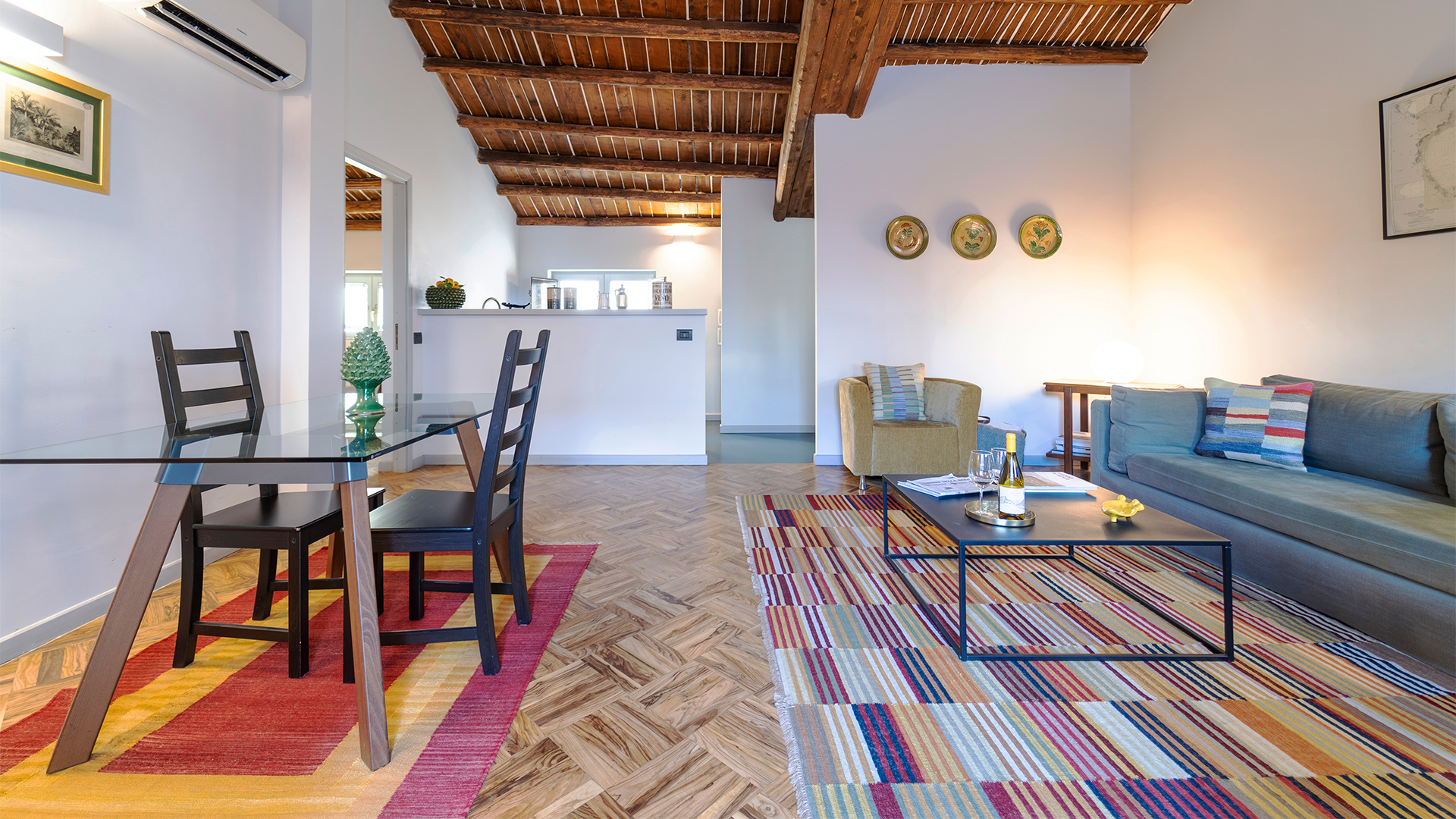 Il tetto spiovente in legno lo caratterizza e gli attribuisce una sfumatura calda e accogliente, come il mercato del quartiere che celebra, ricco di colori e profumi inebrianti. Dotato di camera matrimoniale e bagno privato con doccia, dispone di soggiorno con tavolo da pranzo e zona cucina attrezzata con piano cottura. L’appartamento si trova al quinto piano (mansarda), raggiungibile fino al quarto piano con ascensore e dal quarto al quinto piano tramite una scala in ferro.